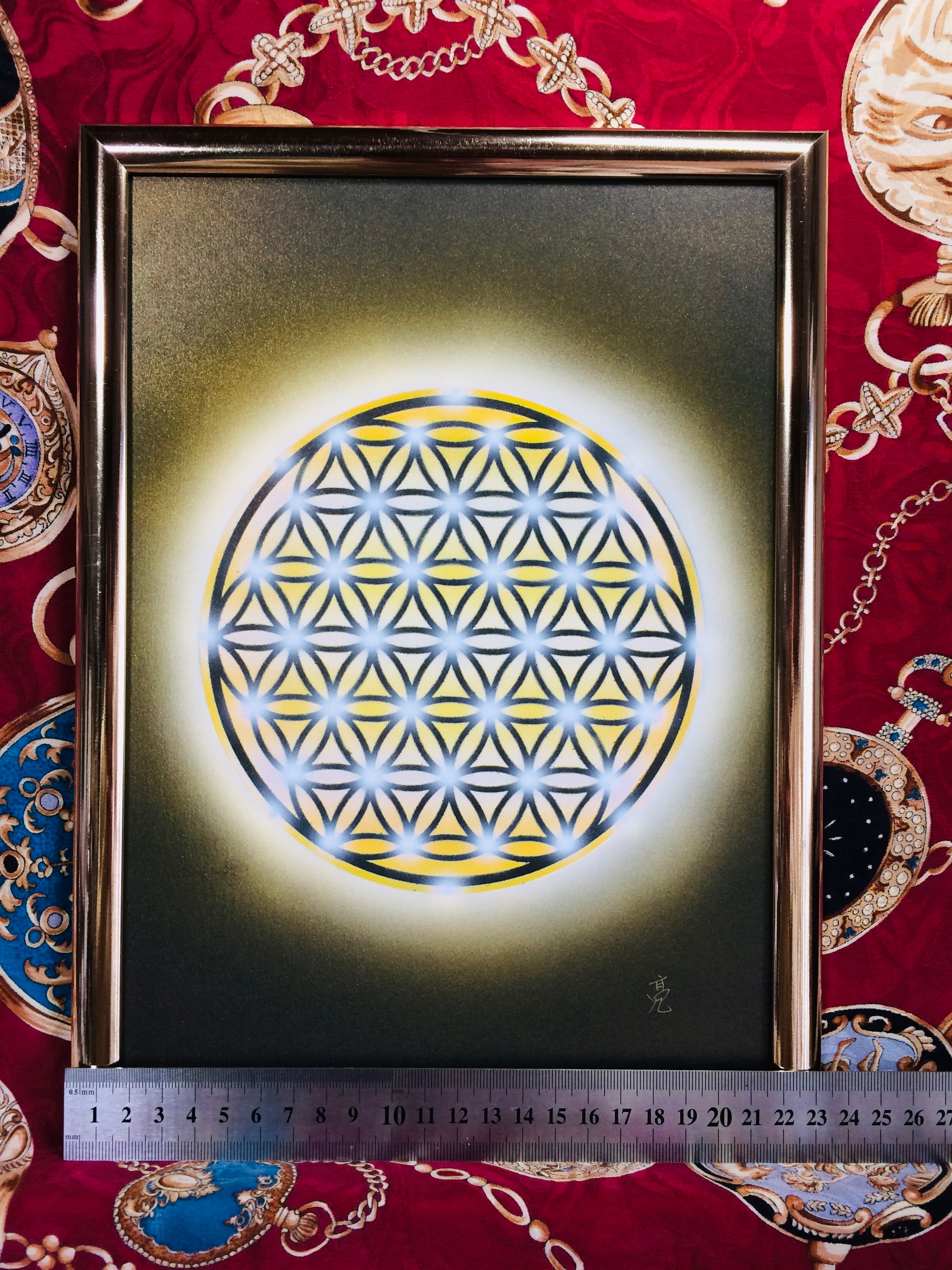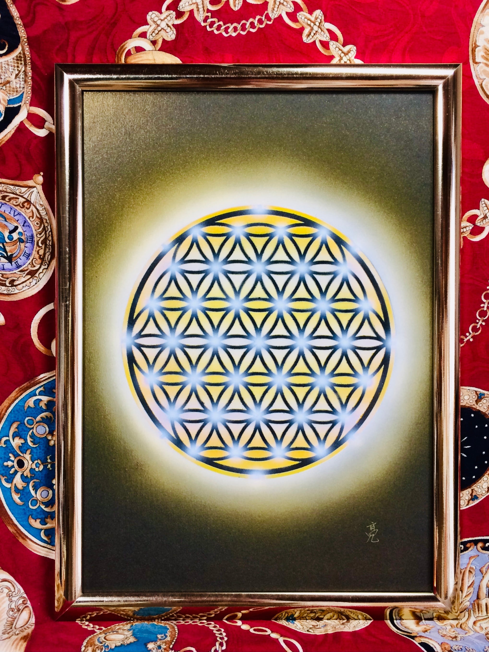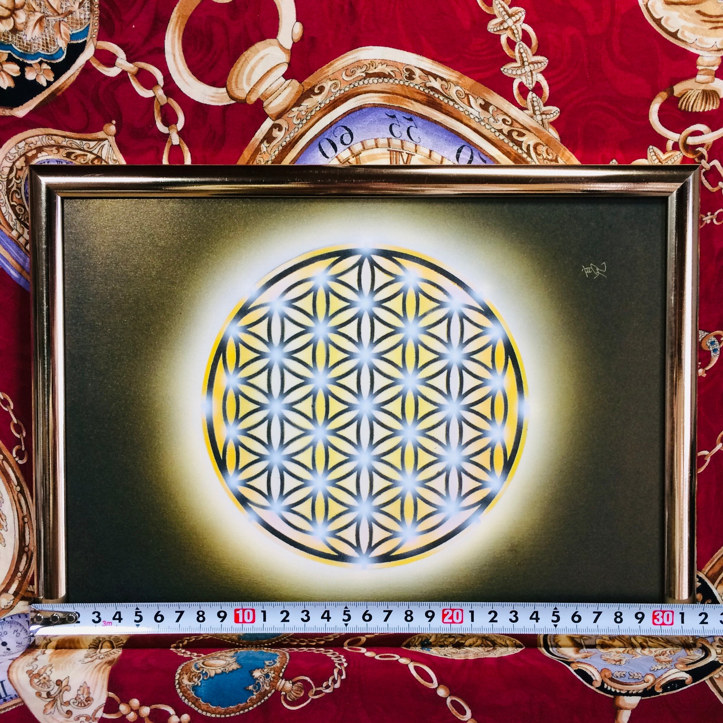 高波動絵画】神聖幾何学模様フラワーオブライフ金運アップ金波動 開運アート