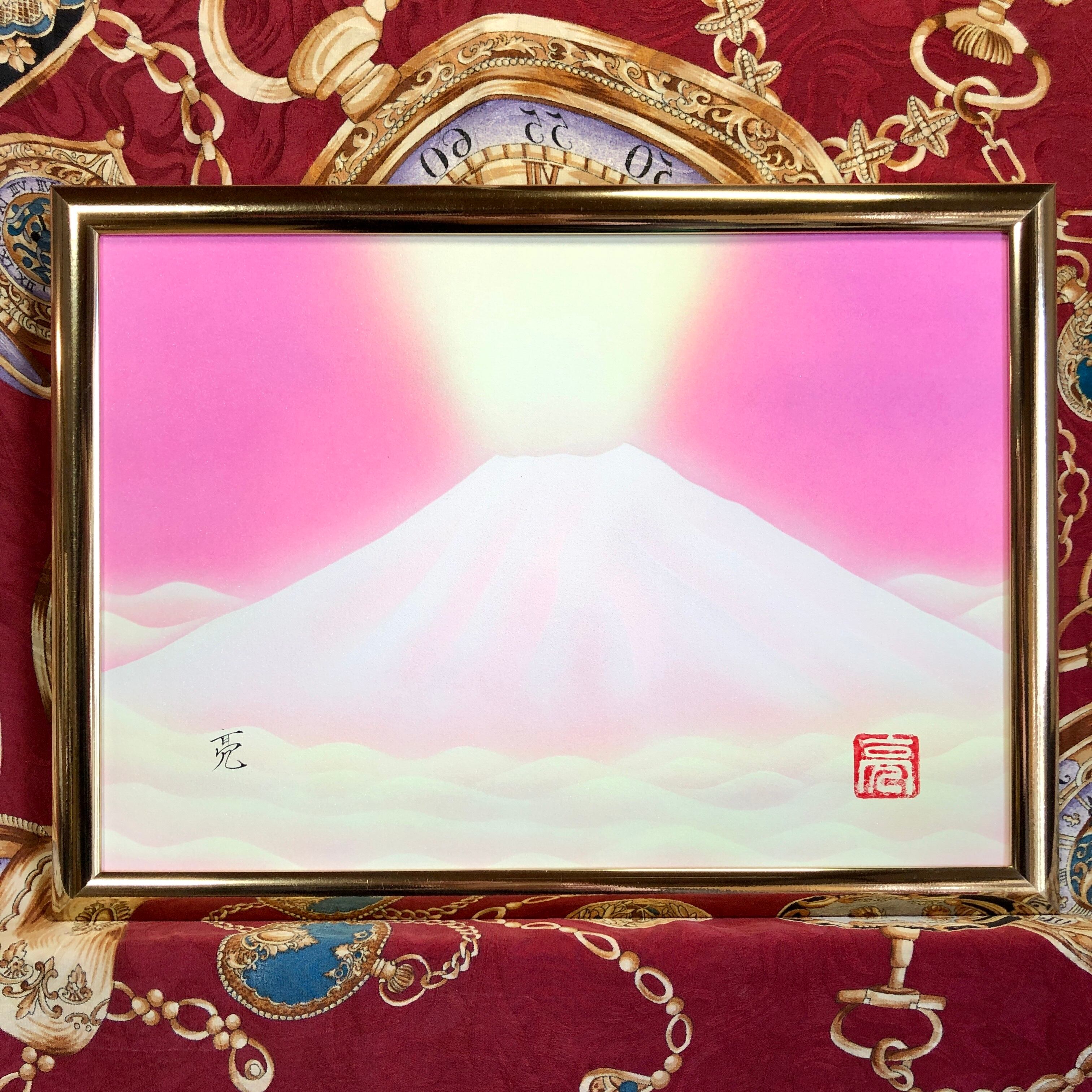 今回紹介するのは風水的に恋愛運・結婚運がアップする色を取り入れて描いた雪化粧の富士山です。