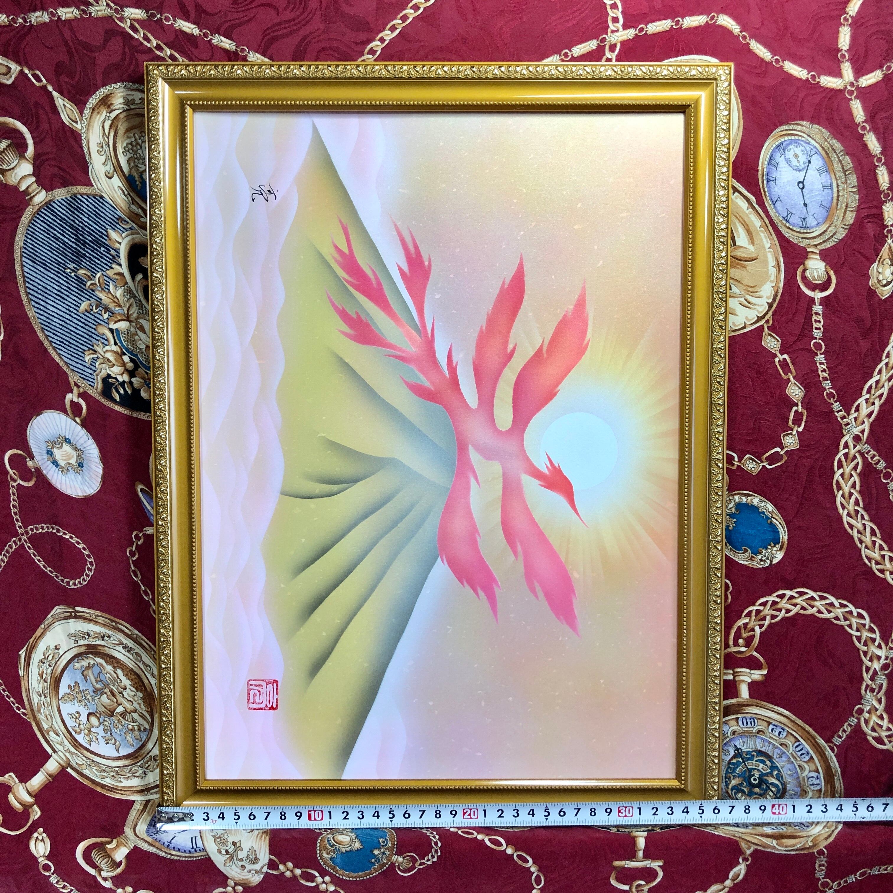 風水絵画】金富士鳳凰画 金運仕事運恋愛運結婚運アップスピリチュアル開運アート
