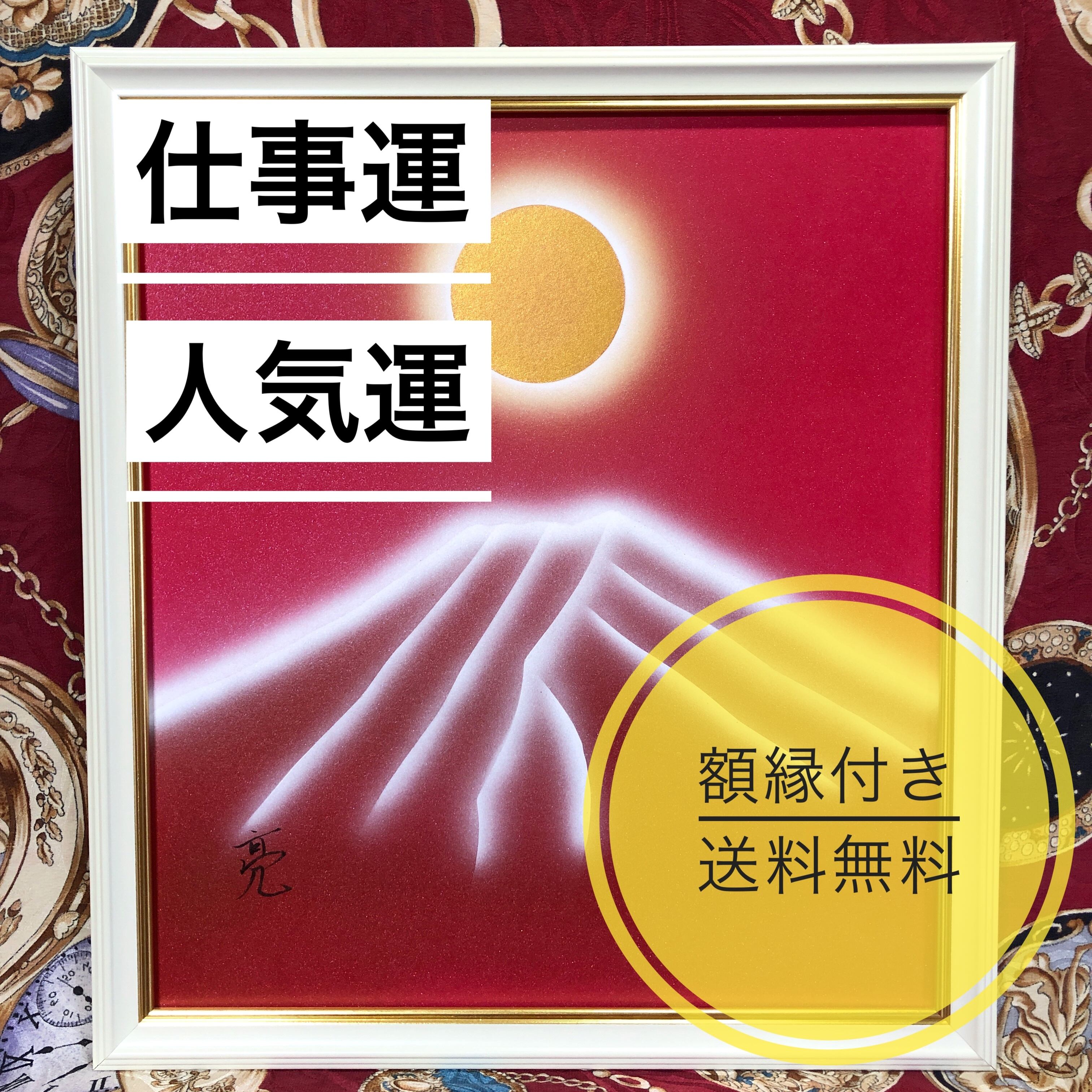 風水絵画インテリア】赤富士天照大御神・仕事運人気運アップ【送料無料・普通色紙
