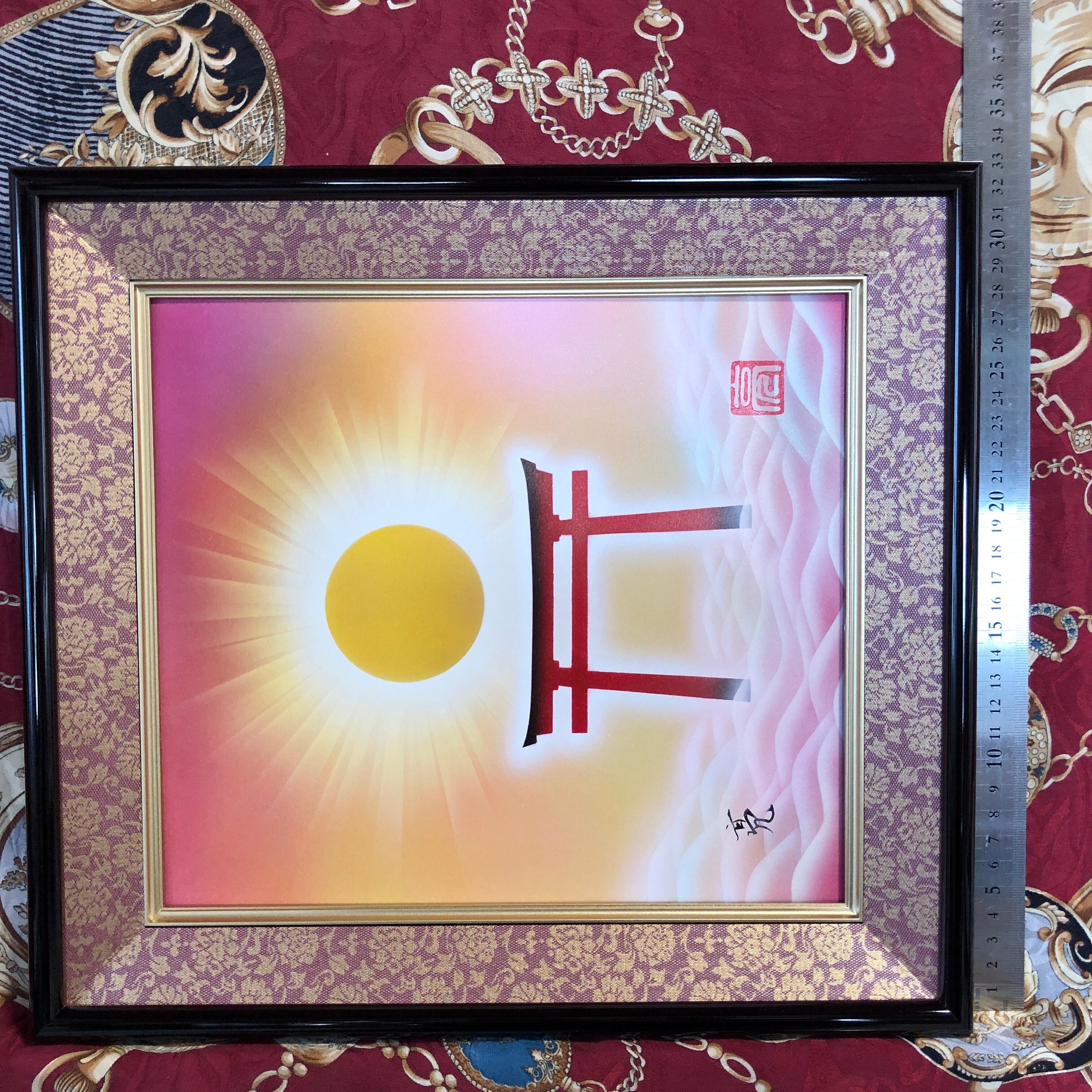 【風水絵画】神話高波動アート『天照大御神』雲海鳥居 色紙サイズ額縁付き