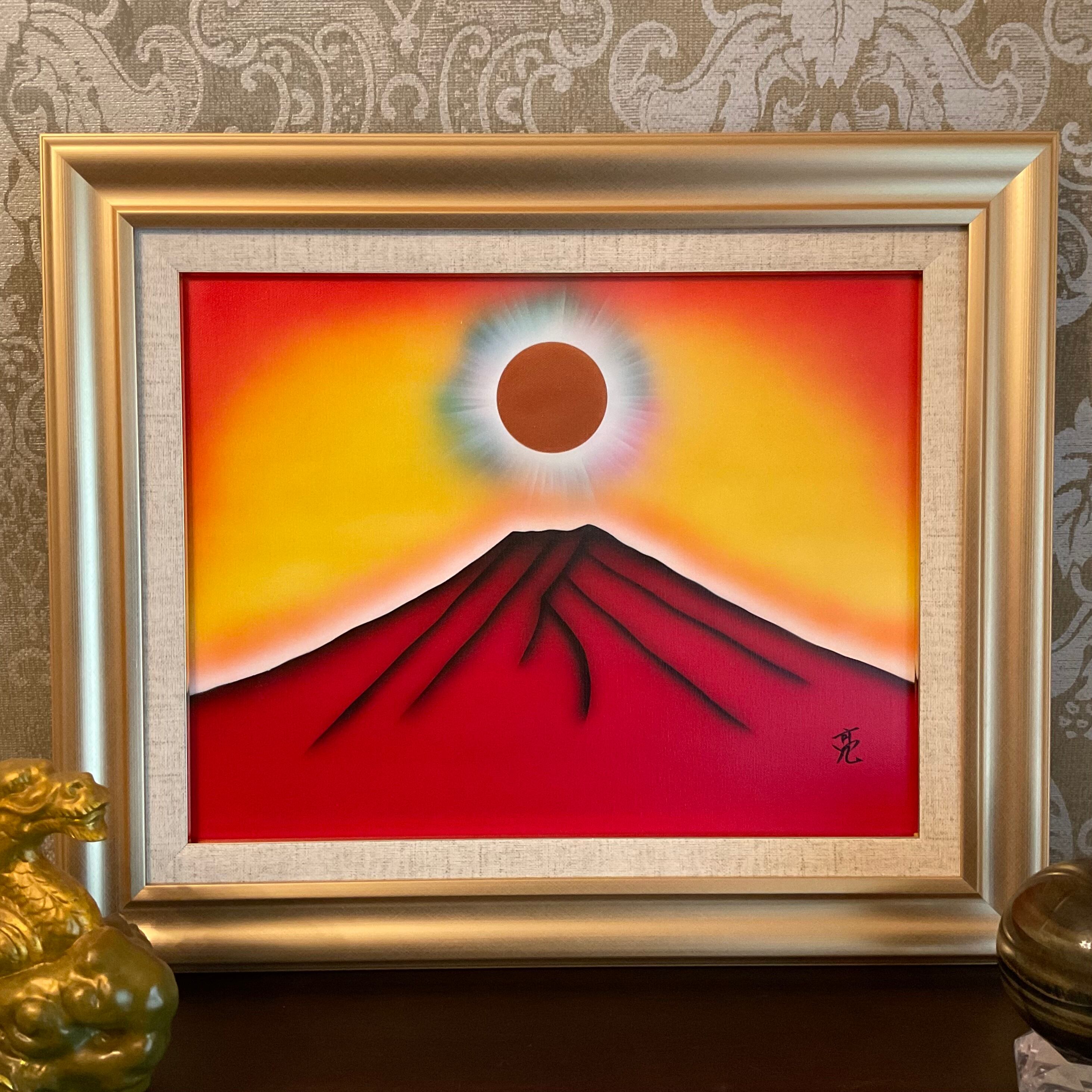 【風水絵画・エナジーアート】天照大御神赤富士 商売繁盛仕事運アップF6号金額縁付